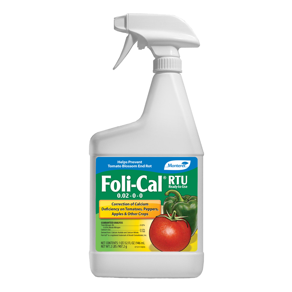 Correct calcium deficiencies and support healthier plant development with Monterey Foli-Cal 32 oz. RTU, a convenient ready-to-use foliar spray with no mixing required. This liquid calcium formula helps prevent and treat common plant disorders such as blossom end rot in tomatoes, peppers, and melons, bitter pit in apples, cork spot in pears, internal browning in grapes, and more. Designed to complement your soil fertility program, Foli-Cal delivers calcium directly to foliage, roots, and fruit during critical growth stages, helping improve plant strength, quality, and overall crop performance.