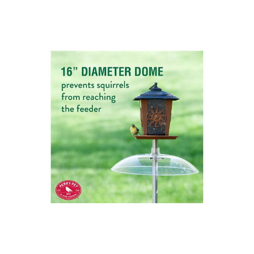 With its large 16-inch diameter and gently curved dome-shaped profile, there’s no getting around it: birds can enjoy eating at the feeder, and squirrels will be blocked from bothering them.